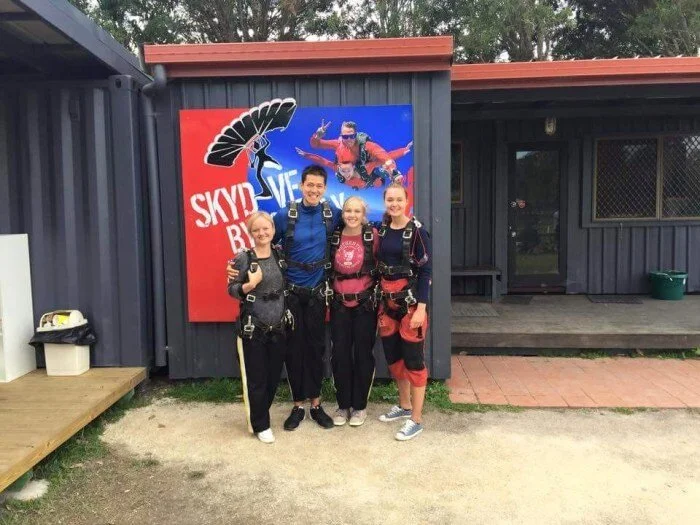 It was one of the most incredible, craziest and overall awesome experiences! There’s nothing quite like it: the anticipation leading up to jumping out of a plane and free falling from the sky to the Earth at about 200km/h! It was the biggest adrenaline rush of my life and I loved the whole experience. I would do it again in a heartbeat! <3
